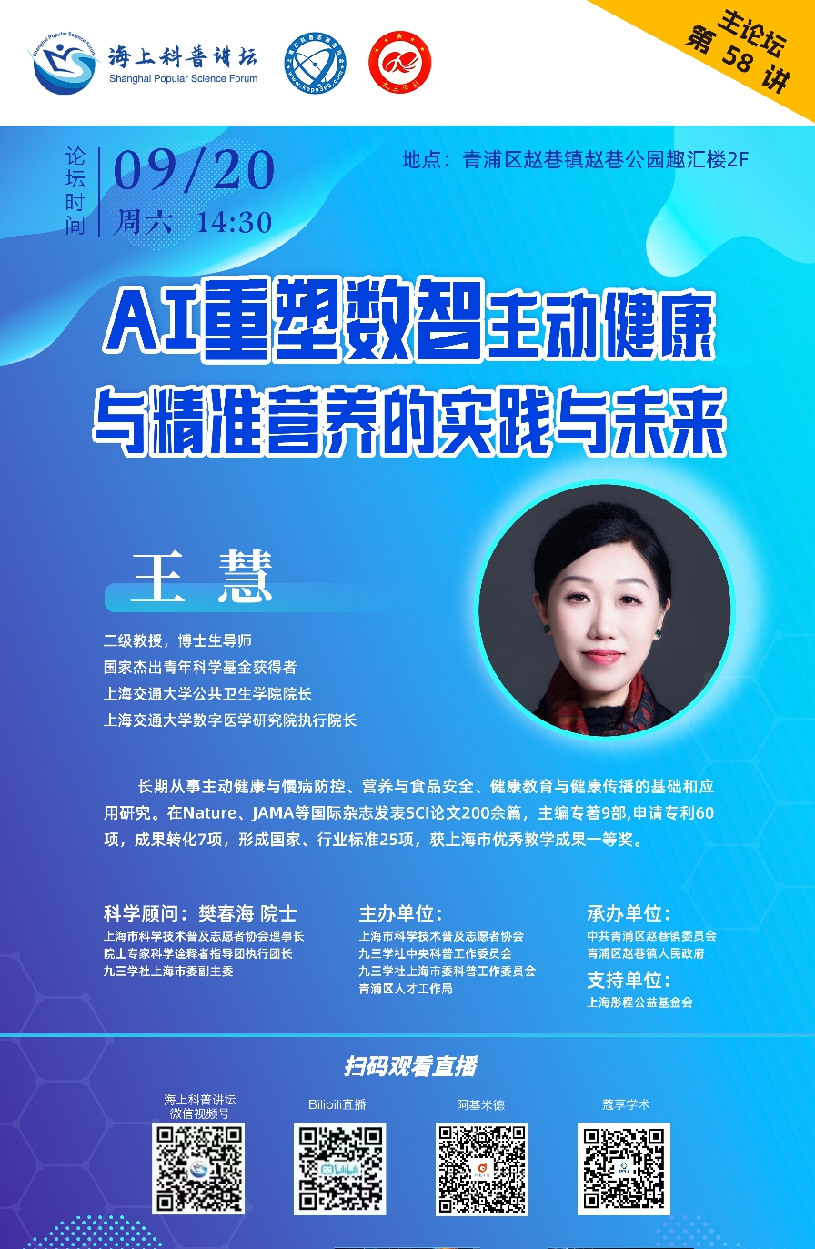【海上科普讲坛-讲座回放】主论坛报告会第58讲 《AI重塑数智主动健康与精准营养的实践与未来