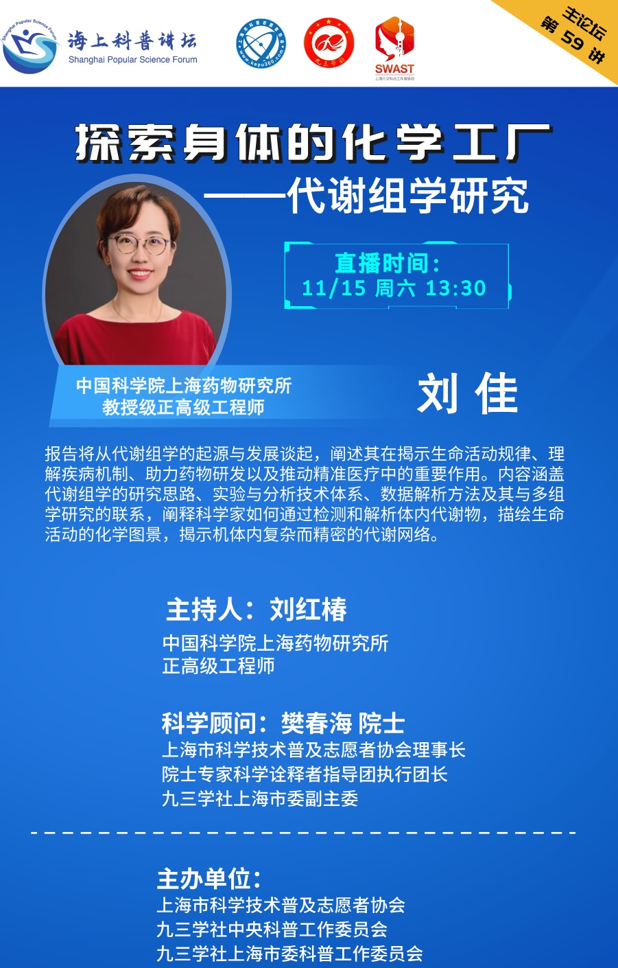【海上科普讲坛-讲座回放】主论坛报告会第59讲 探索身体的化学工厂——代谢组学研究