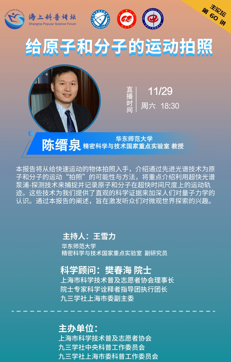 【海上科普讲坛-讲座回放】主论坛报告会第60讲 陈缙泉教授:给原子和分子的运动拍照