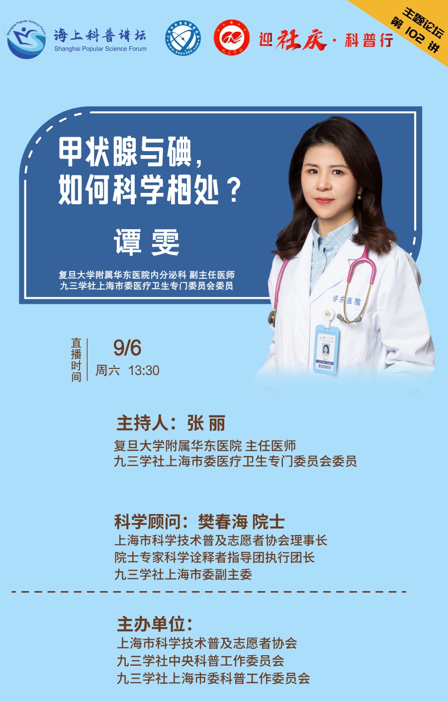 【海上科普讲坛-讲座回放】主题论坛报告会第102讲 谭雯医生:甲状腺与碘,如何科学相处?