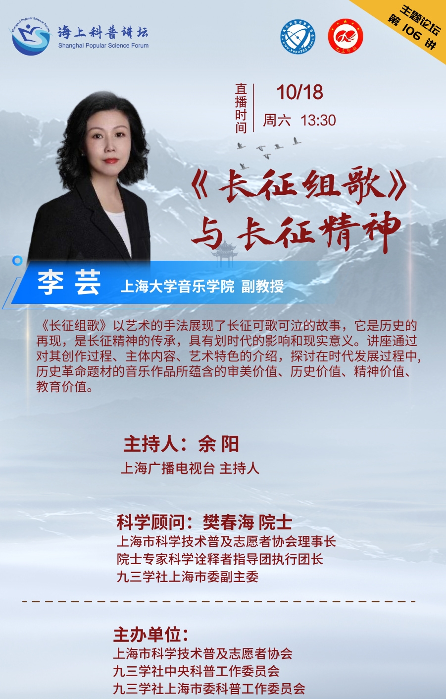 【海上科普讲坛-讲座回放】主题论坛报告会第106讲 李芸老师:《长征组歌》与长征精神