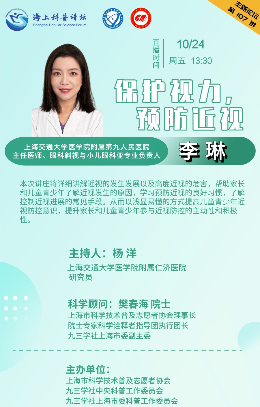 【海上科普讲坛-讲座回放】主题论坛报告会第107讲 李琳医生:保护视力,预防近视
